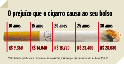 Isso gera um gasto médio de R$56,9 bilhões ao ano para o tratamento das doenças provocadas pelo cigarro.