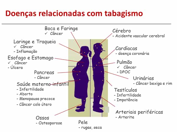 e mais 43 substâncias cancerígenas, além de muitas outras doenças incapacitantes e fatais como as cerebrovasculares, cardíacas e respiratórias.